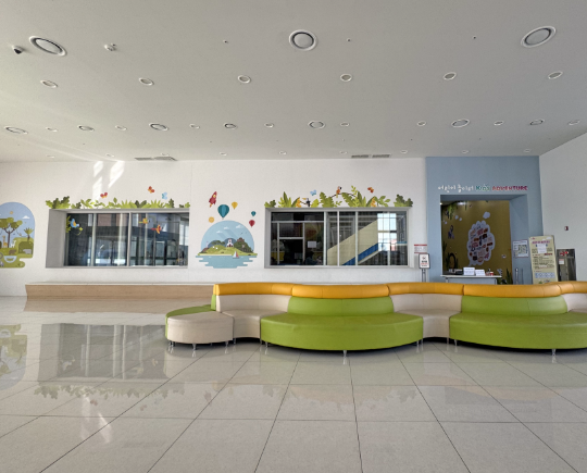 아이들의 상상력을 자극하는 친환경 소재의 어린이 놀이터와 감성을 길러주는 작은도서관이 있습니다. This area features an eco-friendly playground designed to spark children’s imagination, along with a small library that nurtures emotional growth and a love for reading.